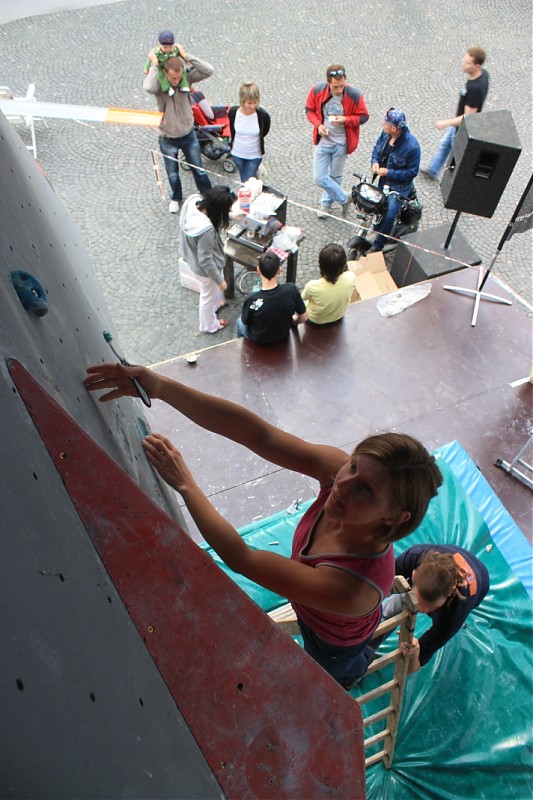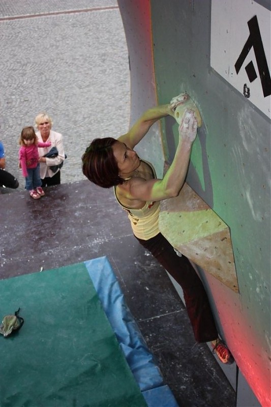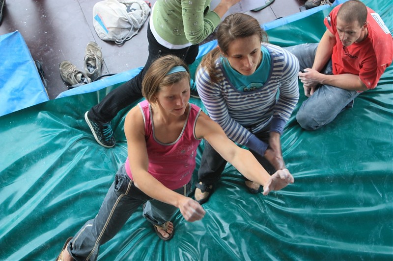Finały żeńskie odbyły się bez problemów. Wszystko szło jak po maśle (czego niestety nie można powiedzieć o męskiej części Mistrzostw). Osiem pań prezentujących różną szkołę wspinania: od płynnie poruszającej się i bardzo doświadczonej Zuzky Cintalovej, przez świetnie wytrenowaną Lenke Micicovą, aż po naszą super dynamiczną medalistkę - Edytę Ropek. Nie zabrakło bojowniczych juniorek: Andrei Cepcova i Lenki Antalikova zacięcie walczących o każdy kolejny ruch. Jednak jedynie dwie pierwsze z wyżej wymienionych dziewczyn miały możliwość chwycić Topu na finałowych przystawkach. Zuza uporała się „do końca” z trzema problemami (w tym dwa zrobiła w stylu OS), natomiast broniącej tytułu Lence jedyne czego zabrakło to pewności siebie, przez co zakończyła finały pokonując jeden bulder OS. Na trzeciej pozycji znalazła się Lucja Krocova.