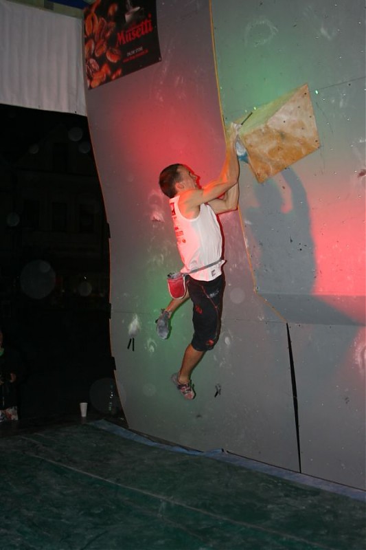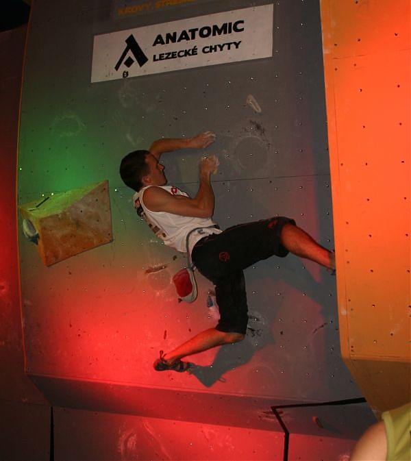 Na zawody stawiło się 13 pań i 45 panów. Cieszył mnie fakt pojawienia się mocnej grupki Polaków, w tym Edyty Ropek i Piotrka Bunscha. Będąc zaangażowana głównie w kobiecy aspekt zawodów stresował mnie fakt sporych różnic w poziomie wspinania, jaki reprezentowały zawodniczki. Układając buldery, a następnie je flashując, chciałam, aby każda z dziewczyn miała możliwość powspinania się. Eliminacyjna formuła, gdzie zawodnicy mieli w zanadrzu 2 godziny na pokonanie 5 problemów dały im możliwość większego rozluźnienia się i potraktowania zawodów bardziej ”towarzysko”, pomimo że same w sobie były serio imprezą. Eliminacje zostały rozegrane w dwóch grupach, dzięki czemu uniknięto tłoku i przepychanek pod ścianą. Wśród kobiet moją faworytką była oczywiście Lenka Micicova, która tak samo jak Lucia Korcova w przepięknym stylu pokonała 5 bulderów w 1 próbie. Wśród panów zdecydowanie wyróżniał się czeski zawodnik z Brna, odbywający (dosłownie) „spacerek” po eliminacyjnych przystawkach. To właśnie – Martin Stranik, którego już wcześniej miałam okazję poznać w Visniovym. Monstrum, prezentujące najwyższy poziom siły, jaki kiedykolwiek widziałam.